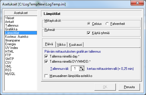 - Lisätty lämpötilamittauksiin mahdollisuus käyttää kolmea