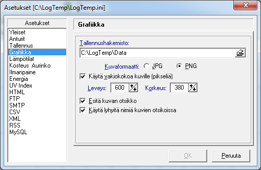 määritellä jokaiselle anturille erikseen. Lisäksi grafiikka