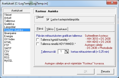 Kosteus+Aurinko) lukemiseen toisen anturin virhetilanteessa