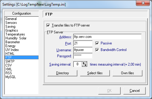 measurement values can also be saved to html-file. MySQL™ database