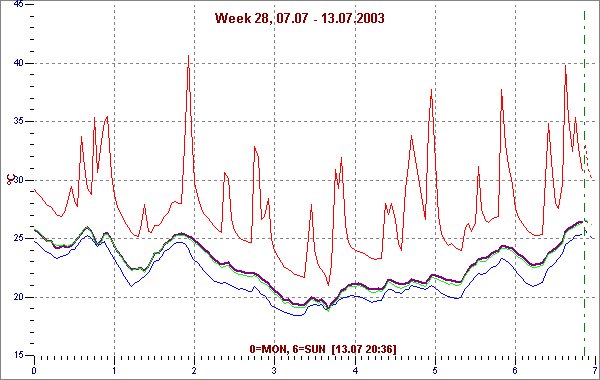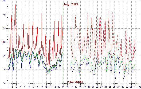 1-Wire temperature sensors measurements. The interval of the