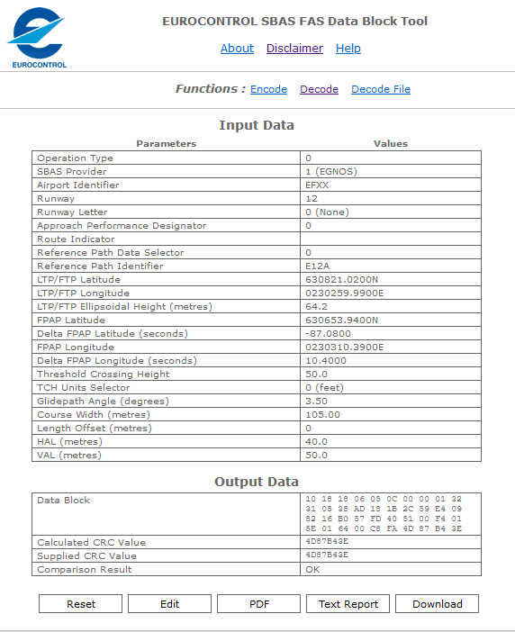 SBAS FAS Data Block Tool, which can be encode FAS parameters to